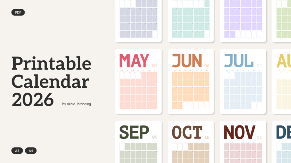 This 2026 printable calendar offers a visually appealing solution for planning your year or decorating your desk. Featuring a simple design and modern typefaces in calming colors, it's perfect for professionals, students, and creatives looking for a touch of elegance in their spaces.